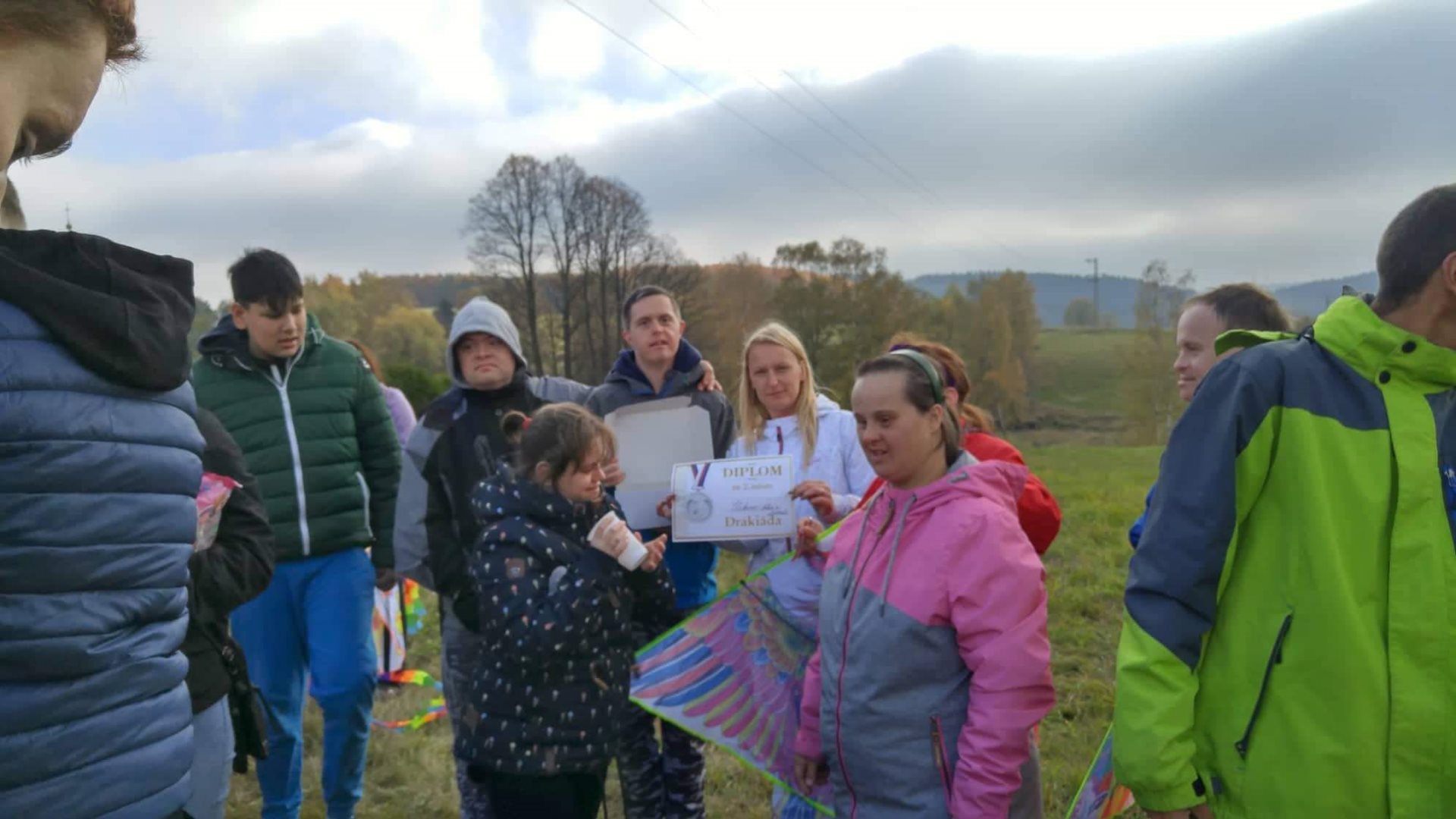 Krásné podzimní dny vybízejí každoročně k oblíbenému pouštění draků. Ani mi letos nezaháleli a připravili jsme pro klienty Integrovaného centra historicky první drakiádu. V sobotu dne 20.11. jsme se sešli na louce u hřbitova. Počasí nám slibovalo sluníčko, ale někde se nám zapomnělo. Štěstím bylo, že se nezapomněl vítr, který byl tím nejdůležitějším pomocníkem organizátorů. Draci dorazili různí , od malých , po velké. Pestré i jednobarevné. S pomocí se podařilo všem vzlétnout. Drakiáda měla i své vítěze, kteří získali sladkou odměnu. Pro všechny účastníky bylo připraveno drobné občerstvení a teplé nápoje, které všem přišly k chuti.